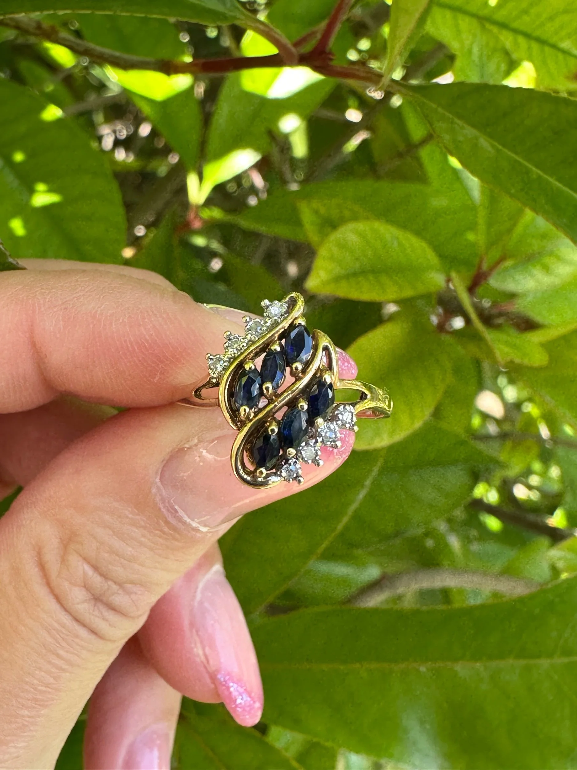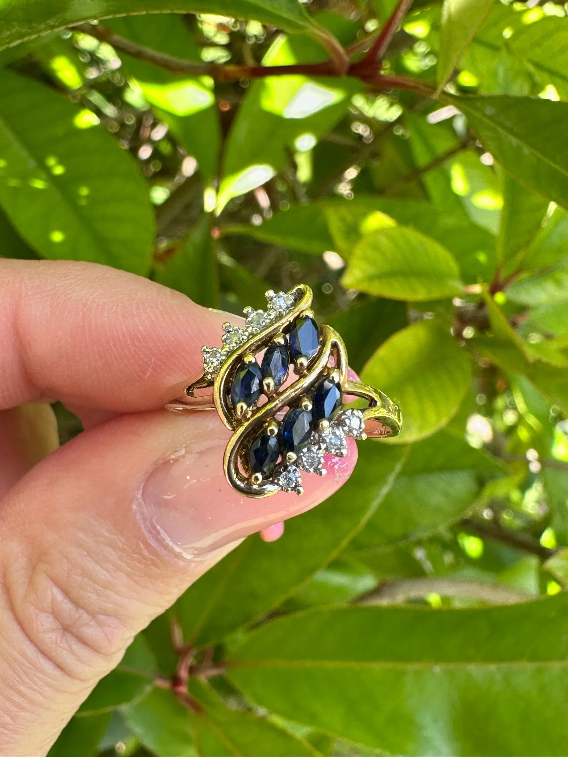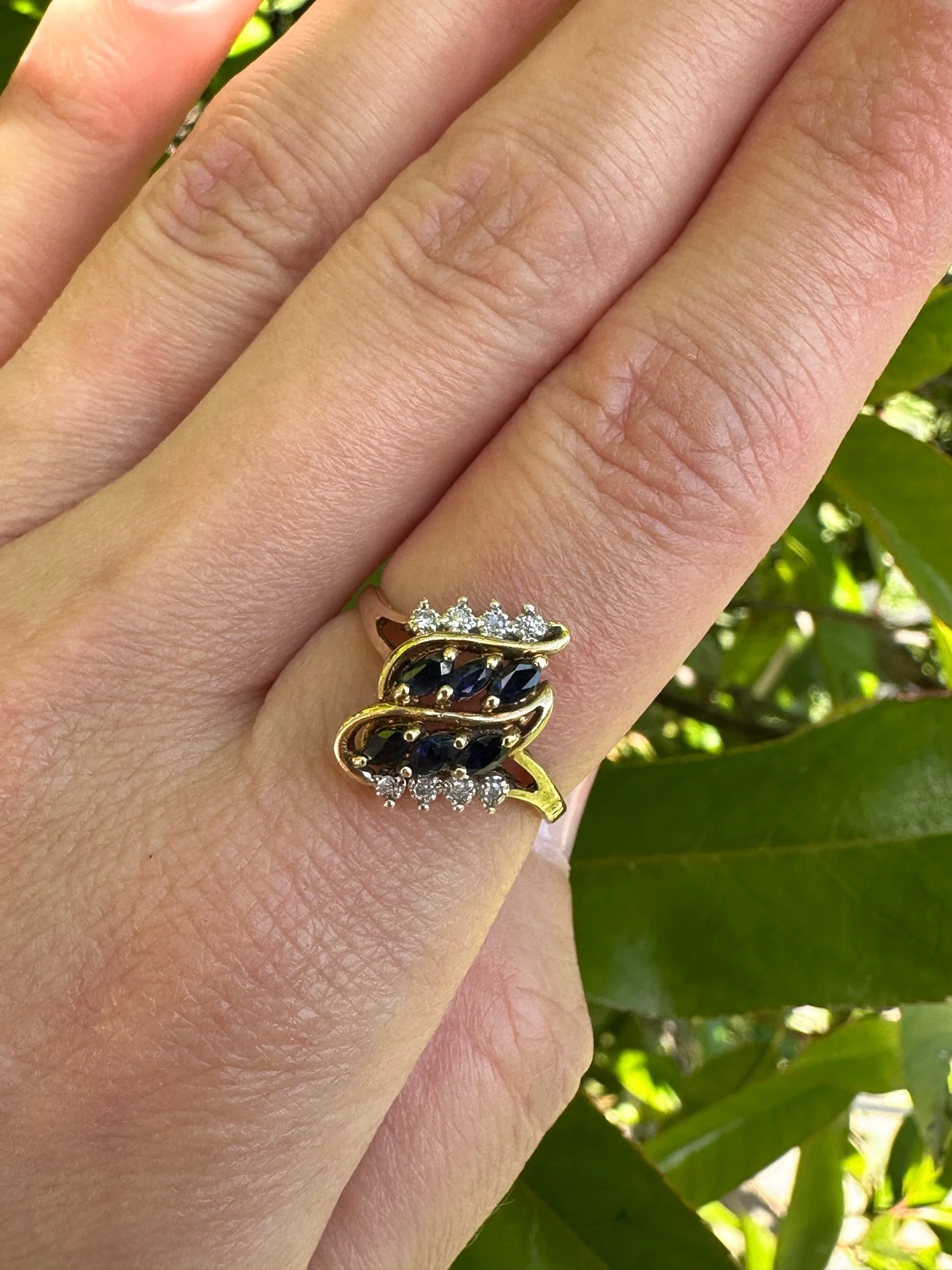 shop › 10k Solid Gold sapphire and diamond swirl ring 10k Solid Gold sapphire and diamond swirl ring Sale Price: $495.00 Original Price: $685.00 Beautiful natural sapphires and diamonds set in 10k, solid, yellow goldSuper cute vintage pieceSize 6.5 (Can be resized) Beautiful natural sapphires and diamonds set in 10k, solid, yellow goldSuper cute vintage pieceSize 6.5 (Can be resized) Purchase Added! Reviews Reviewer Name Review Date Star Rating Description Posted on Etsy Product Show More