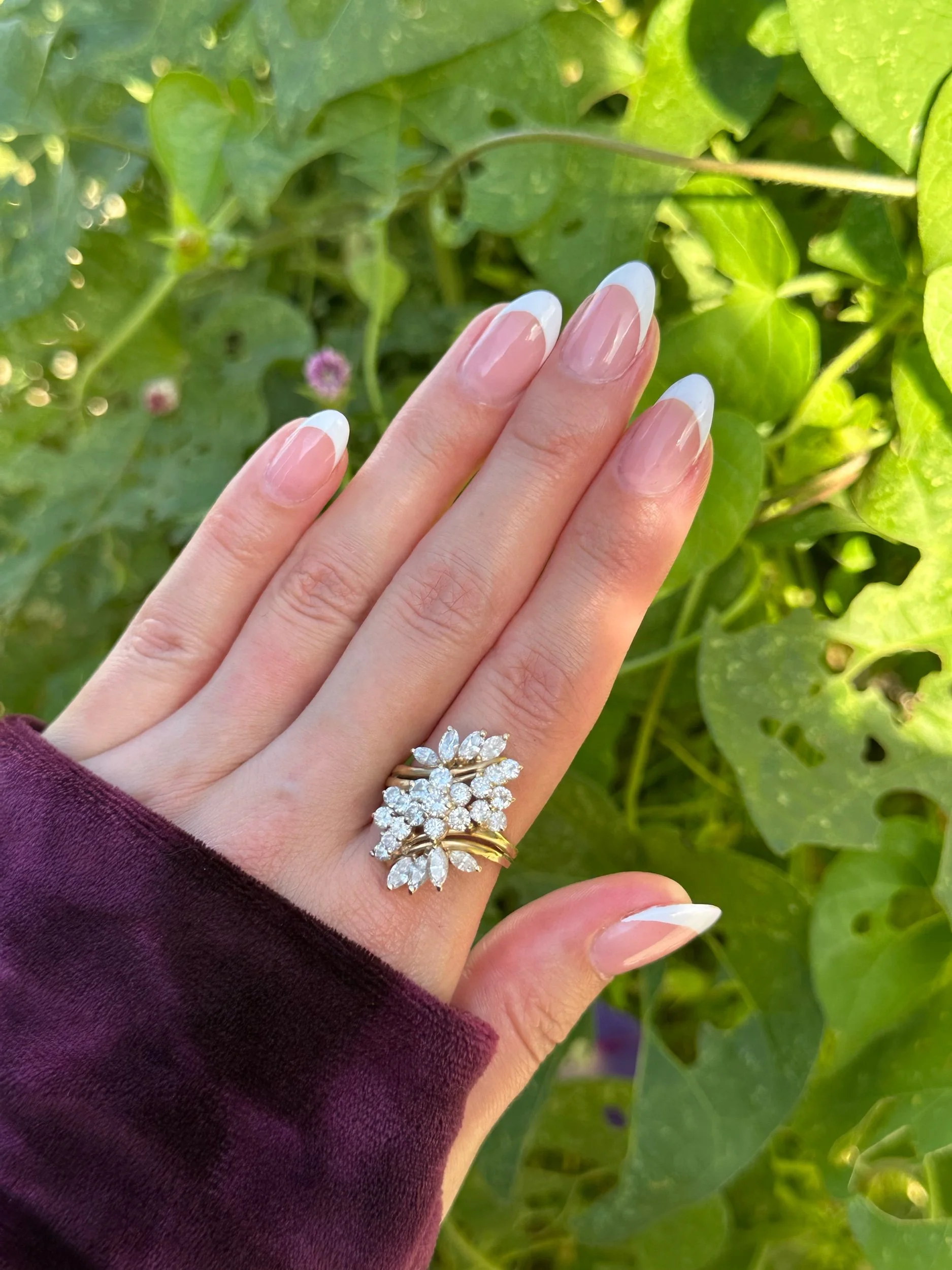 Marquise-cut diamonds form the most elegant little leaves, and round brilliant diamonds create a sparkling flower center… this piece honestly leaves me speechless. ✨